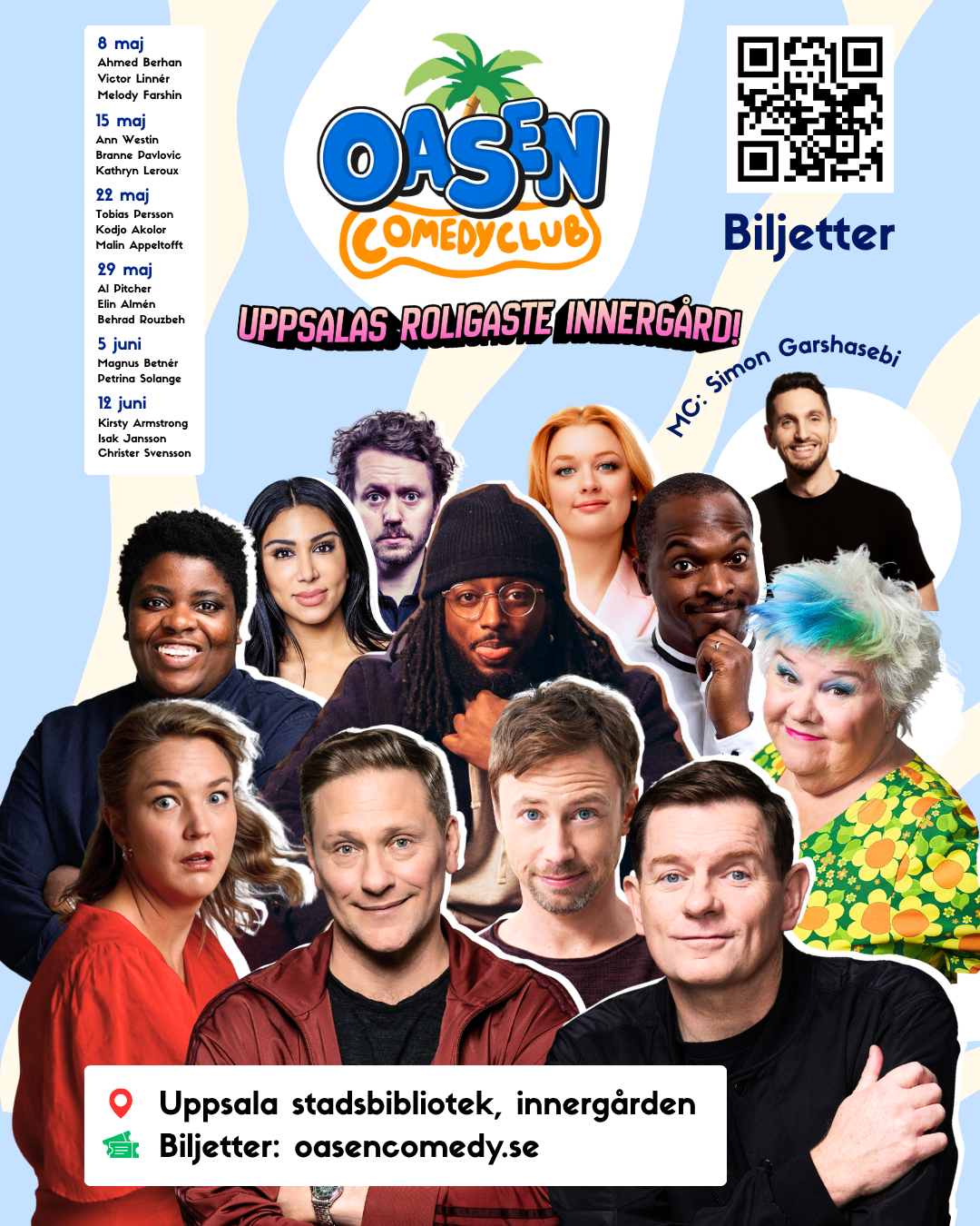 Välkommen till Oasen Comedy Club – Uppsalas roligaste innergård. Ett gott skratt förlänger livet!